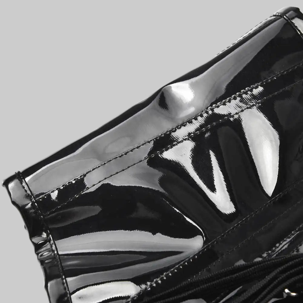 Turn heads and define your silhouette with the Eclipse Leather Waist Cincher – a daring fusion of shiny PU leather, steampunk edge, and modern sexy style. Designed as an under bust corset, it sculpts your waist while giving you the freedom to style it your way, from gothic outfits to bold lingerie looks.
