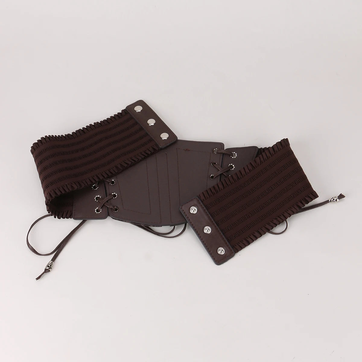 - Retro wide belt with lace accents, pin buckle, and tie rope detail